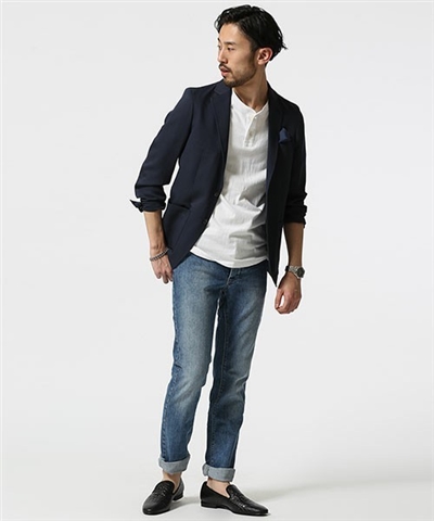 個人的な好みはジーンズにジャケットの服装です。