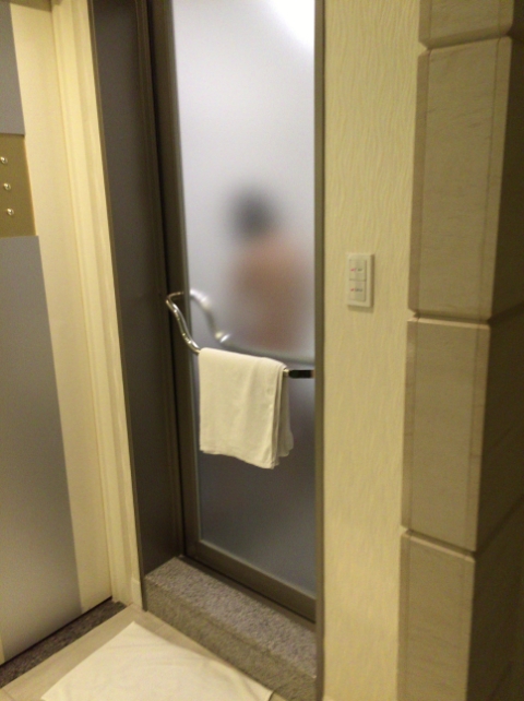 シャワーを浴びに行った彼女をすりガラス越しに。